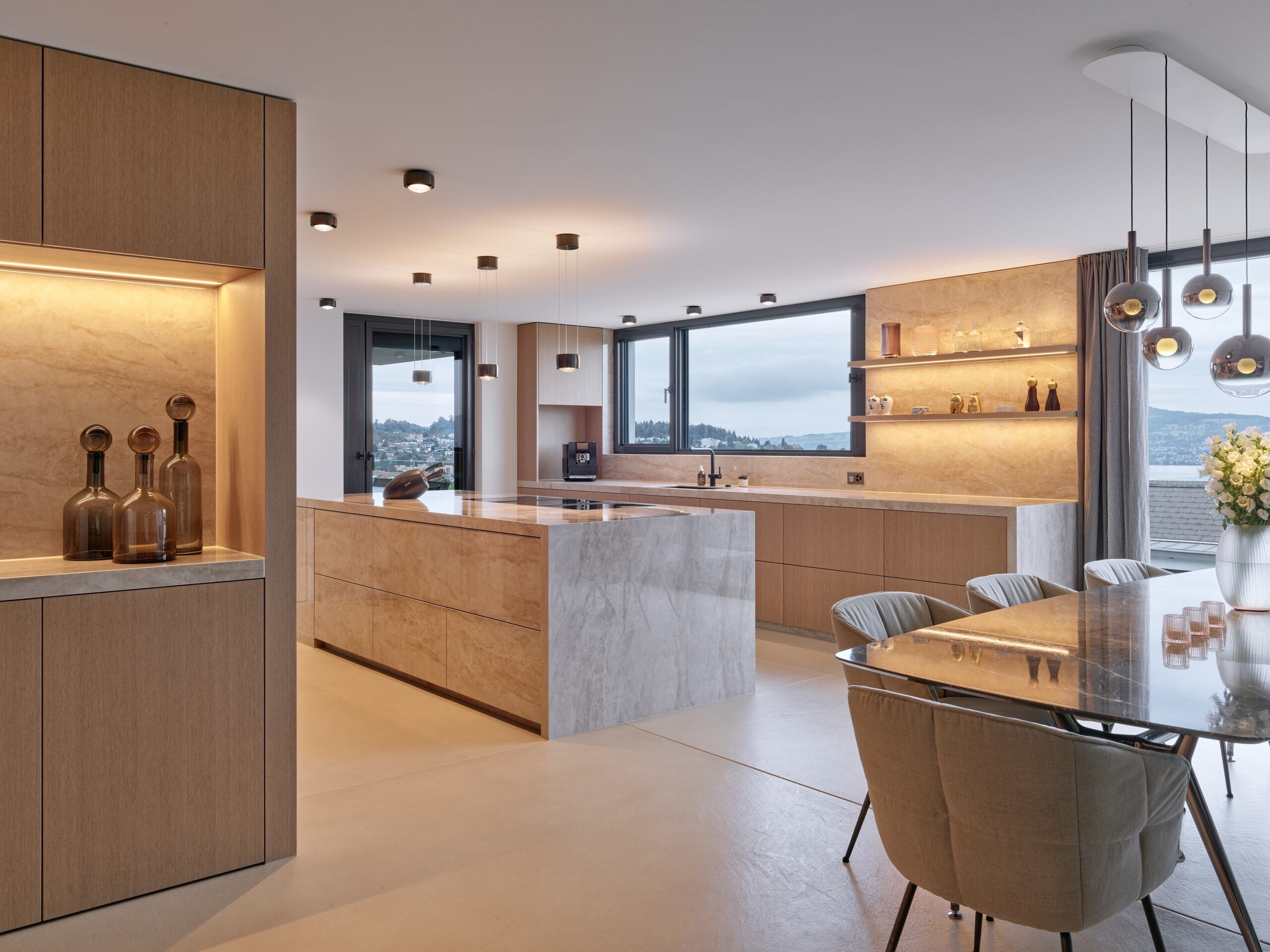 Ein elegantes Design, ausgeklügelte Details und hochwertige Materialien zeichnen diese Küche aus. Mit einer Innenarchitektin hat die Bauherrschaft ein Interior geschaffen, das sowohl einladend als auch funktionell ist.